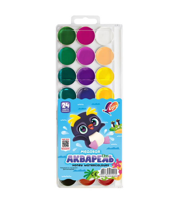 Акварель "ZOO", 24 цвета, без кисти, пластиковая упаковка, европодвес.