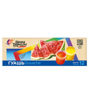 ГУАШЬ "ШКОЛА ТВОРЧЕСТВА", 12 ЦВЕТОВ ПО 20 МЛ.