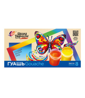 ГУАШЬ "ШКОЛА ТВОРЧЕСТВА", 8 ЦВЕТОВ ПО 20 МЛ.